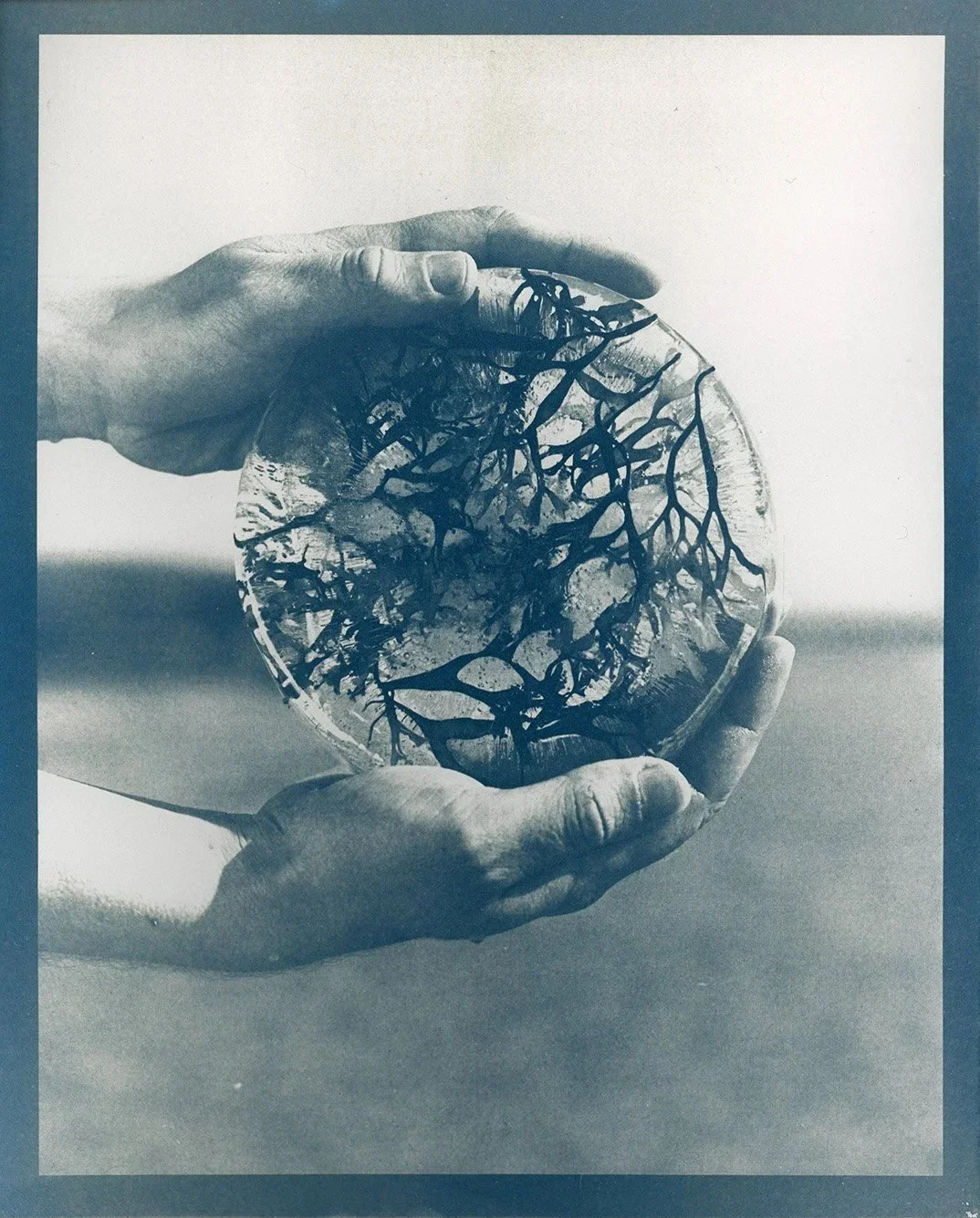 Gorm an Fheòir – The Blue of the Grass was supported by the Harry Kerr Photography Bursary in 2024. Drawing inspiration from the natural materials used in traditional healing practices across the Gaidhealtachd, Gorm an Fheòir features cyanotype images which blur the boundary between body and environment, toned by the landscape they originate from, demonstrating our interconnectedness to our natural environment and the enduring fluidity which exists between people, plants and animals.